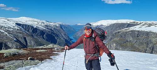 Fint terreng og ved 1100moh var det snøfritt, og videre ned måtte skia bæres. Fin overgang fra fjell/snø til frodig fjordterreng ved Simadalen.