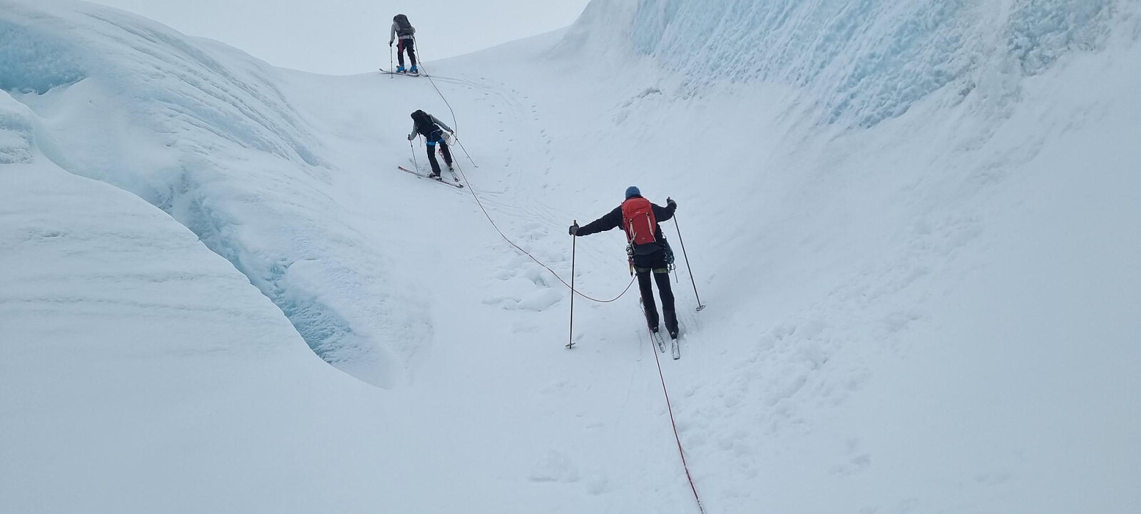 Dag 2 startet fra Demmevasshytta og ned brearmen Rembesdalskåka og brukte breutstyr.