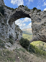Kjøring fra Alfas del Pi via Polop og Callosa etter hvert via smale og svingete fjellveier gjennom gammelt terrasselandskap. Fra liten parkeringslomme på vel 600 moh på bra sti fortsatt i gammelt terrassert kulturlandskap med oliventrær og (mest) mandeltrær. Johannes, som har gått 100+ turer i området de siste 10 år eller så, ledet an og hadde mye spennende å fortelle.. Turens desiderte hovedattraksjon var noen enorme buer i kalksteinsfjellet; virkelig verdt å få med seg! Vest for oss ruver Penya Alta/Cim de Aixorta, kanskje bestigning en annen gang…Selv om ingen toppbestigning flott og variert tur i nydelig fjellandskap på Costa Blanca med trivelige nye bekjentskaper.