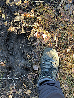 På sykkel fra Hammeren forbi Bjørnholt. På et passelig sted for å bushe ut til Brenterød låste jeg sykkelen og dro ut i vilnisset. Der gikk jeg på en smell umiddelbart. Et vepsebol ble forstyrret, og jeg gikk i lett panikkmodus.