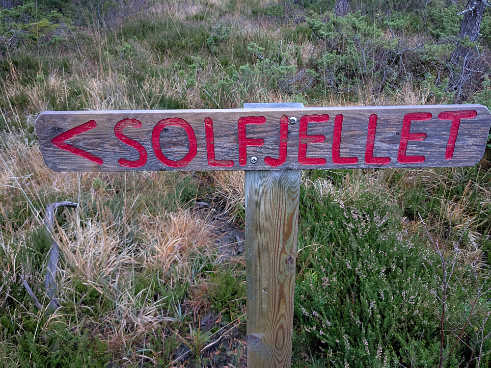 Fra Åfjord kjørte jeg etter FV 723 mot Linesøya. I krysset ved Ratvikveien fortsatte jeg etter FV 723 i 1,5 kilometer. Ved innkjøringa til Vindkraftanlegget er det skiltet parkering til høyre, men jeg kjørte inn på en liten grusvei som går ca. 300 meter oppover til venstre. Her er det parkering og info om Solfjellet. Herfra går det en tydelig sti som alle som har besteget Solfjellet har brukt. Delvis plankelagt. Flere hvilebenker på tur opp. Varde og trimbok på toppen. Flott utsikt mot Linesøya og havet. Ingen sol men regn på Solfjellet i dag.