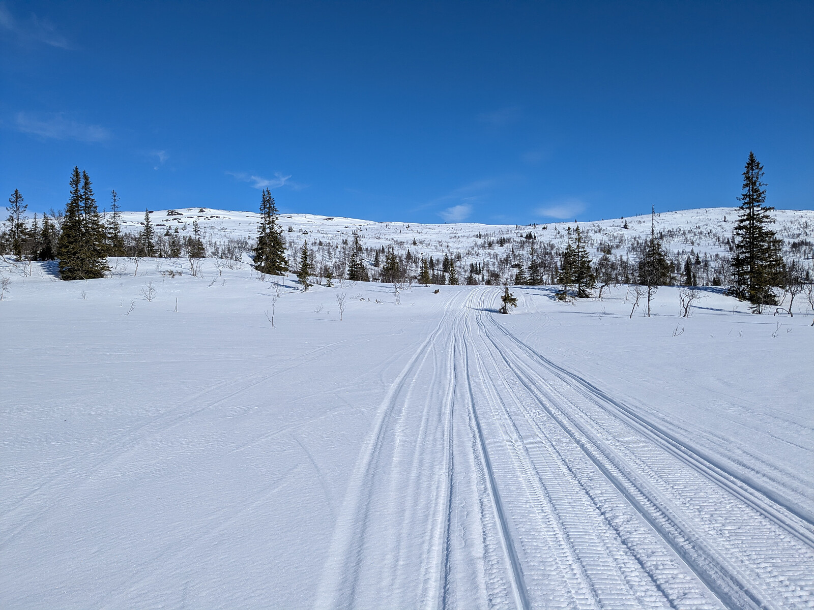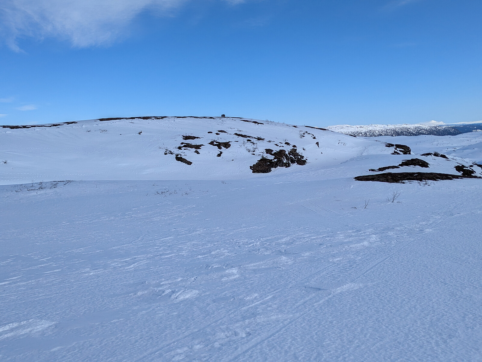 En flott skitur i Lierne. Parkerte ved Mellomvatnet og gikk opp til en traktorvei ovenfor gården Brattland, en gård som bærer navnet sitt med rette. Herfra gikk det et scooterspor nesten helt til toppen. Sol hele dagen, men en del kraftige vindkast på toppene. Varde på toppen. Tidligere var det Hestberget som ligger to kilometer lenger nord som var regnet som høyest, men det var fire meter lavere. Total lenge på turen ble 10,7 kilometer.