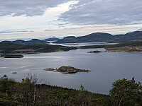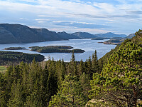 Tur nummer to i dag. Kjørte sør fra Åfjord sentrum, og tok til høyre skiltet Kroken. Fortsatte etter Krokaveien helt til enden ved snuplassen, og parkerte der ved Gjertrudvika. Gikk litt tilbake til jeg møtte en traktorvei som jeg fulgte et stykke. Videre opp i skogen mot fjellet var det kronglete og mange dyretråkk og stier. Veldig bratt et stykke før man kommer opp til snaufjellet. Flott utsiktstopp. Varde på toppen.
