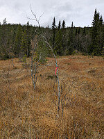 Jeg parkerte ved Storheia Parkering. Målet var Austdalsbrotet inne i vindparken. Jeg startet å gå i en seig bratt motbakke, og her ønsket jeg meg en el-sykkel eller en el-sparkesykkel. Jeg ser de fleste har benyttet sykkel. Men det er lett å bestige topper fra vei. Fra telemasta på toppen var det kanskje 60 meter å gå i terreng. Jeg er litt usikker på om topp-punktet kanskje ligger bare i Ørland. Jeg rakk kun ei rødnål her inne på denne turen på grunn av korte dager. Statistikk: Åfjord 34/81 - Ørland 4/36