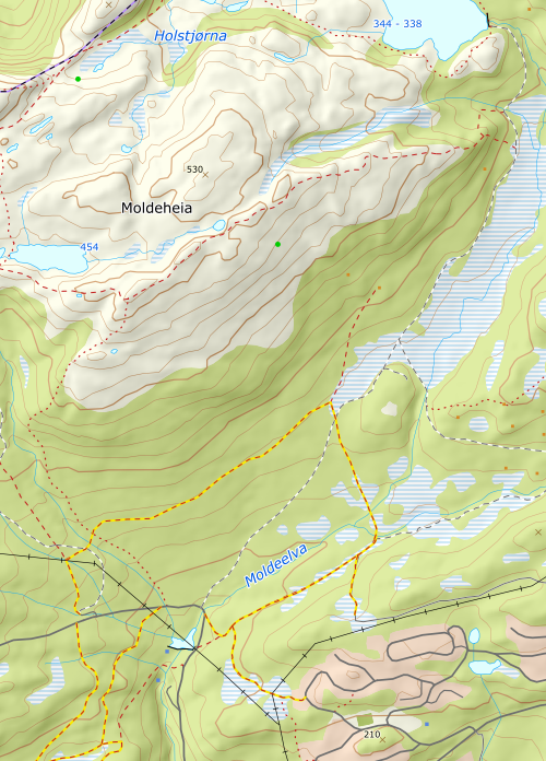 Kontroll og etterarbeid på flaggene fra Tusenårsvarden til Moldevannet. Deretter ned til Inntaksdammen. Flere flagg blåst av pinnen og alle flagg ble tapet opp igjen for å sikre at de ikke faller av igjen. Det er litt mer arbeid enn bare å merke løypa. Dette blir garasje arbeid neste år.
