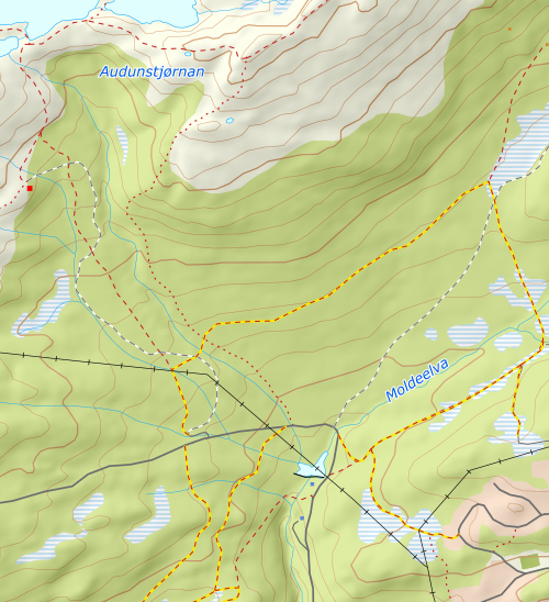 Rusletur i marka i stålvarmen som ligger over Molde regionen. Stoppet opp ved Auduntjønna for å kjenne på temperaturen. Sikkert 25 grader i vannet. Det var bra at det blåste litt på ryggene