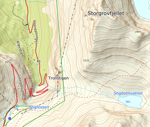 Tur til Storgrovfjellet, fint vær og varmt. Overnatta i telt på Trollstigen.
