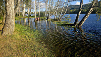 Trilletur langs elva og litt opp i høyden på Åssiden. Veldig mye vann i elva etter mange dager med regn. Sol og 18 grader :)