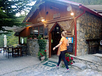 Fra Litochoro kjørte vi veien opp til der den ender i Prionia. Stor parkeringsplass og kafe som dog var stengt. Så var det bare å følge >>>