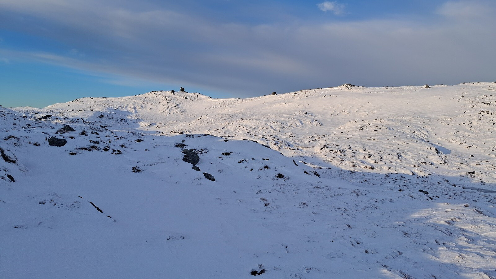 Tur med brodder. Det var grov hagl-snø-is på svaberget.