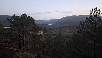 Fortsatt pøsregn og mye vind, men litt snillere enn Sollia. Var en liten bratt bakke med snø før toppen av Blåtinden, men det var spor fra dagen før.