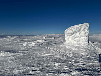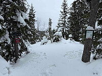 Startet turen fra stor parkeringsplass rett før vinterbommen på Friisvegen i Øksendalen kl 7.30 i skumringen denne søndag morgen. Kaldt og vindstille, ca. 15 minusgrader. Lave tåkeskyer lå over området, men de var i ferd med å lette. Gikk først skiløype til Breistulen. Da jeg kom dit forsvant tåkeskyene og frem kom en klar og skyfri himmel.