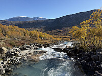 Fra Glitterheim gikk jeg stien sydover, over Veo på en bro og frem til Hestbekken. Her tok jeg av stien og satte direkte kurs opp til Styggehøe (1883 m). De siste 150 høydemeterne før toppen gikk jeg på snø.