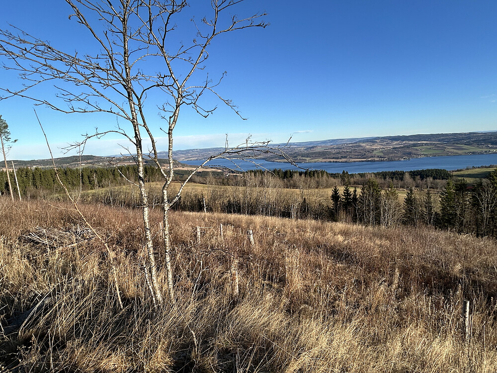 Tur hjemmefra med Trym. Etter mange dager med regn, tåke og gråvær var sola tilbake. Men ganske sur vind i dag.