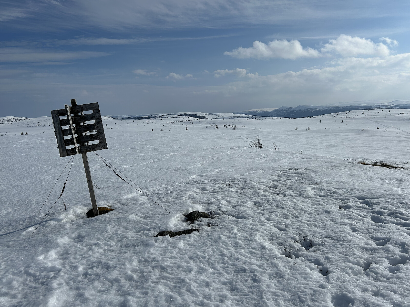 Ser bort på Leppehytta, der løypa til Nordbua og Storkvelvbu tar av. Leppkampen bak buskene.