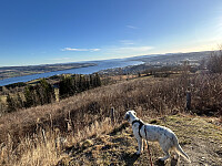 Tur hjemmefra med Trym. Etter mange dager med regn, tåke og gråvær var sola tilbake. Men ganske sur vind i dag.