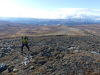 Tur alene. Nydelig vær, blikkstille og sol. Men mye nysnø i høyden. Noen steder bærer den, noen steder ikke, men for det meste bærer den nesten. Det blir krevende ned ura fra Søndre S. til oppgangen mot Midtre S. Ned her bruker jeg lang tid. Også ned fra Midtre S. må jeg trå varsomt - nysnøen dekkere ura og dens mange hulrom. Lite dyreliv å se bortsett fra sau og tamrein og noen få turister på T-stien. Ikke ei rype på hele turen!!