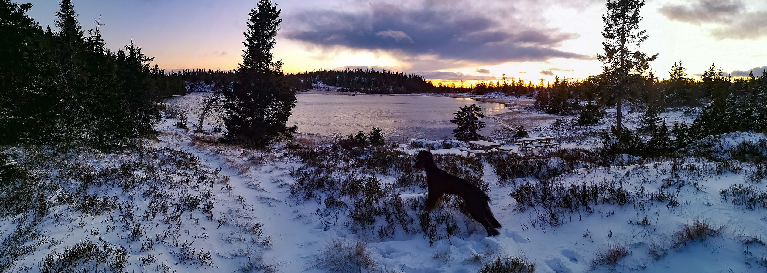 Tur alene med Embla. Rask gange/lett jogging. Nysnøen gjorde sitt til at jeg ikke merket så mye til gjørma i stiene. Ca 3 minus, men det var ikke skikkelig frost ennå. Stiene blir bedre i morra når kulda får virke litt. En flott tur ble i solnedgangen.