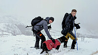 Ikke det beste været her i Romsdal, men uansett så må man jo få seg en tur denne siste dagen i 2025. Kjørte fra Fiksdal opp til Reset øverst i Nakkedalen. Ca 25-30 cm snø. Kram snø fra start til et godt stykke oppe i lia. Da fikk Embla store problemer med store snøballer i pelsen. Dette ga seg da vi kom høyere opp der snøen var mye tørrere. Jeg gikk først og tråkket spor helt opp til 650 moh da Håvard til resten av etappen opp. Litt enklere snøforhold i ura mot toppen. Ikke akkurat god sikt og sommerbris på toppen. Skikkelig hustrigt. Ingen lunch på toppen idag heller. Vi brukte 1,5 timer opp til varden. Nedover ble det bare en lek.
