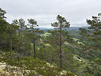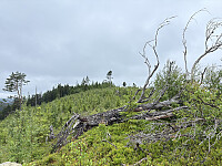 Jeg kjørte opp til snuplassen NØ for Vudduåsen og parkerte der. Fra snuplassen går det en sti/kjerrevei retning Vudduåsen som jeg fulgte frem til selve toppryggen. Turen oppover ryggen var temmelig gjengrodd av ungtrær og det var til tider vanskelig å ta seg frem. Like før toppen åpnet det seg opp med god utsikt både mot øst og vest. Selve toppunktet lå inne i krattet, herfra var det lite fremkommelig og null utsikt!