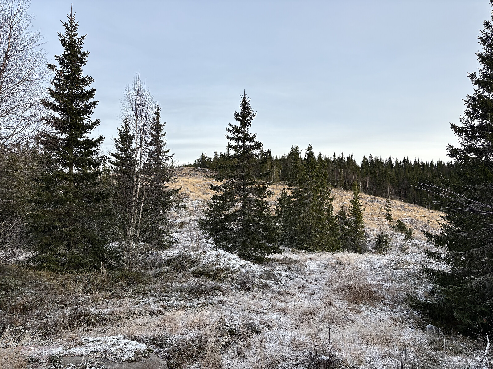 Fra snuplassen var det en enkel spasertur langs en umerket sti opp til toppunktet på Kompåsen. Åpen kolle uten noe spesiell markering av toppunktet.