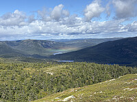 Neste stopp på denne turdagen var Saulifjellet. Fra Øyvatnet var det ikke lange kjøreturen til avkjøringen opp fra hovedveien. Avkjøringen var skiltet med privat vei, så jeg valgte å parkere i en lomme ved hovedveien. På tur oppover mot hyttefeltet innså jeg etterpå at jeg hadde vært litt vel defensiv med tanke på parkeringen og kunne absolutt kjørt helt inn til hytta innerst langs vegen. Fra enden av veien fulgte jeg en sti over bekken og fulgte så denne et stykke oppover før den dreide videre retning Saulifjellet. Det var god utsikt mot øst langs hele oppstigningen til skaret nord for toppen. Her ble gradvis stien borte, men likevel enkelt terreng å følge videre frem til toppen. Saulifjellet reiser seg litt over det grønne og frodige terrenget rundt, og her kan man absolutt >>>