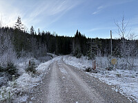 Jeg parkerte like før bommen ved Brumund Sag. Her er det romslig plass for parkering av mange biler. Fra parkeringen tok jeg sykkelen fatt oppover bakkene helt til snuplassen ved veis ende. Underveis passerte jeg en flott gapahuk, men utsikten som plassen sannsynligvis ville briljert med uteble fullstendig pga tett tåke denne dagen.