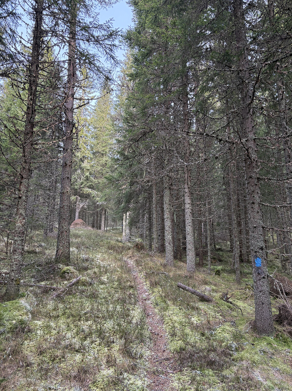 Fra besøket på Hetta kjørte jeg østover og inn mot Gransjøen. Like før veis ende parkerte jeg i en egnet lomme like ved der hvor Finnskogleden passerer. Leden førte meg rett opp til riksrøys 93 A. Herfra var det flott grensegate og sti videre opp mot Elgklinten, men denne dagen skulle jeg videre østover istedenfor. Jeg fulgte noen dyretråkk langs ryggen og kom opp til Gransjöberget etter noen minutter. Ingen utsikt på selve toppunktet som heller ikke var markert, men femti meter lenger øst var det fin utsikt mot blant annet Tyskeberget og Hetta. Samme vei tilbake.