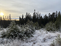 På tilbaketuren på vei ned hogstfeltet kunne jeg nyte synet av Tyskeberget i flott lys. Jeg fulgte omtrent samme rute tilbake til bilen.