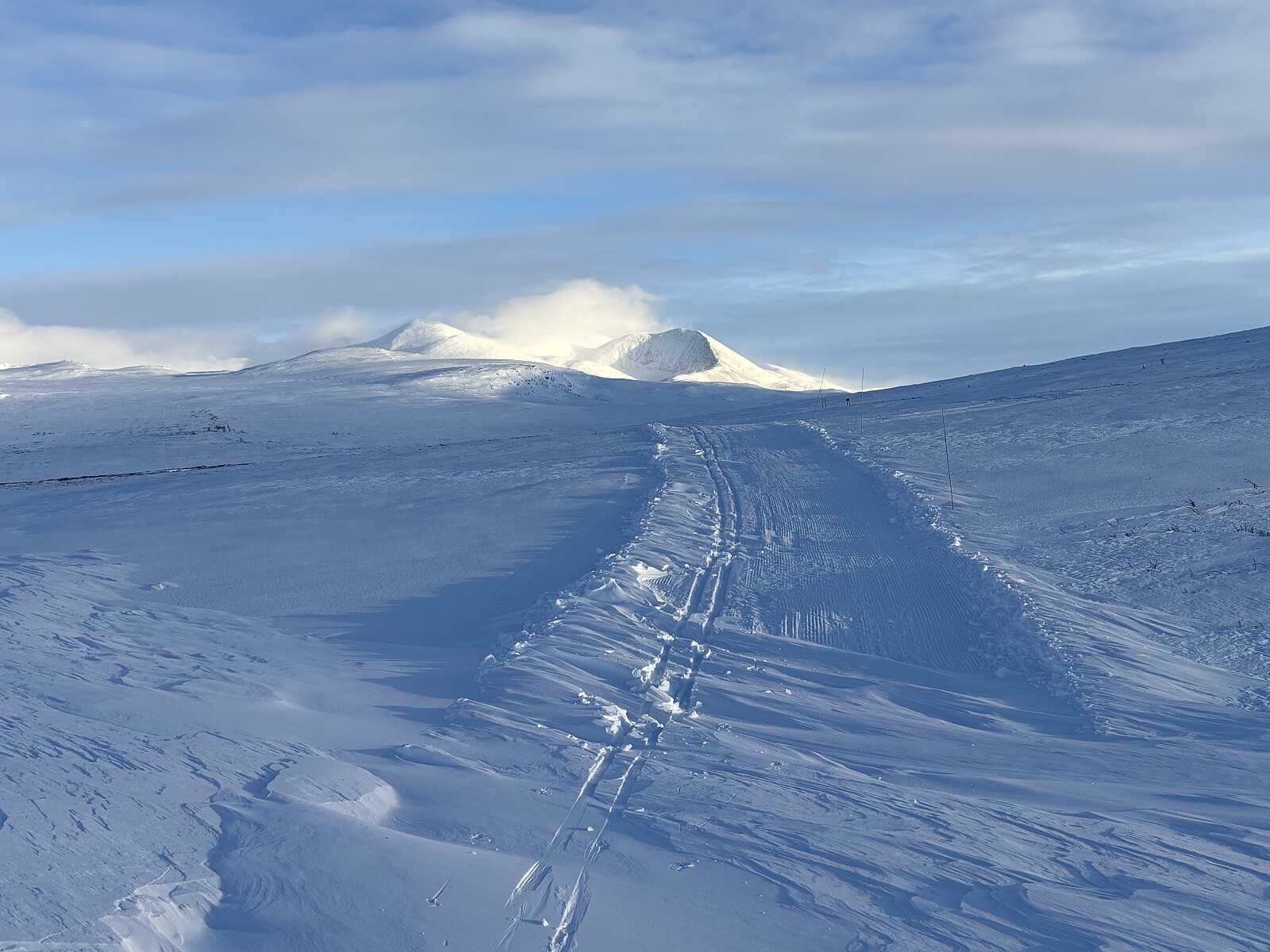 Etter en liten akeøkt på morgenen ønsket jeg å forlenge utetiden litt. Jeg tok derfor fjellskiene fatt og ruslet opp til Haukberget mens de andre valgte å bli igjen ved hytta. Toppen ruver ikke så veldig i terrenget, men er en utrolig flott utsiktstopp. Spesielt på en dag som denne! Jeg fant litt le ved varden og ble sittende å nyte en stund før jeg gikk samme vei tilbake igjen.