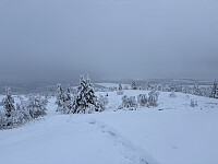 Denne toppen hadde jeg forsøkt meg på to ganger før, men da har jeg funnet alternative turer pga jakt i området. Denne gangen måtte det klaffe; både tett tåke og mye snø gjør nok sitt til at ivrige jegere heller vil prøve seg igjen en annen dag.