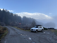 Kjørte fra Vinstra sentrum opp til Beitmyrstulen. Her tok jeg til venstre mot skytebanen og parkerte i en lomme like ved denne. I ettertid så jeg at jeg kunne kjørt videre 3-400 meter inn til en p-plass for turgåere.