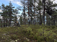 Jeg kjørte inn til Gåsodden og parkerte bilen i en egnet p-lomme ved vannkanten. Herfra fulgte jeg skogsvei inn til en snuplass, og videre på traktorvei et stykke opp i lia. Halvveis oppe tok jeg av fra traktorveien og gikk i lyngterreng videre opp til toppen. Flott varde på toppen, men litt begrenset utsikt. Fint utsiktspunkt mot sør litt nedenfor toppunktet.
