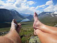 Vi kom opp litt seint på dagen, så etter å ha booket oss inn startet vi med en liten tur mot Gjendehalsen >>>