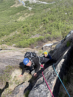 Føringstur for Niklas Dyrhaug og samboeren Frida. Plan A var egentlig Søre Dyrhaugstinden, men pga dårlig vær i Jotunheimen dro vi til Romsdalen i stedet og klatret nordveggen på Romsdalshornet. Et godt valg!
