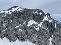 Føringstur for Svein over Austanbotntindtraversen i nydelig vær. Startet fra "vinterparkeringa" siden det var rikelig med snø på utmarsjen. Fant ut at jeg kunne ha kjørt inn og parkert i endeveien 400 meter lenger sør for vår parkering. Greit å vite til senere. Fine forhold over traversen. Vi klatret direktevarianten opp til sørtoppen i to taulengder. Litt småvått et parti, men klarte å bryte oss opp. Måtte fram med stegjerna ca. 30 meter langs en snøegg etter sørtoppen, men ellers hadde vi ikke bruk for dem.