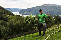 Ferien er over og skolen er i gang igjen. Jeg går nå mitt andre år på Friluftsliv bachelor ved Høgskulen i Sogn og Fjordane (Sogndal). Egentlig er dette første år med friluftsliv da fjoråret kun var idrett årsstudium, så ser veldig fram til et år med mye god læring om friluftslivet og mange fine fine turer. Semesteret starter med en kanotur over tre dager på Kaupanger. Målet med turen er å bli bedre kjent samt øke ferdighetene knyttet til kano og friluftsliv generelt. Vi ble delt inn i grupper på fire som skulle samkjøre gapahukbygging og matlaging.