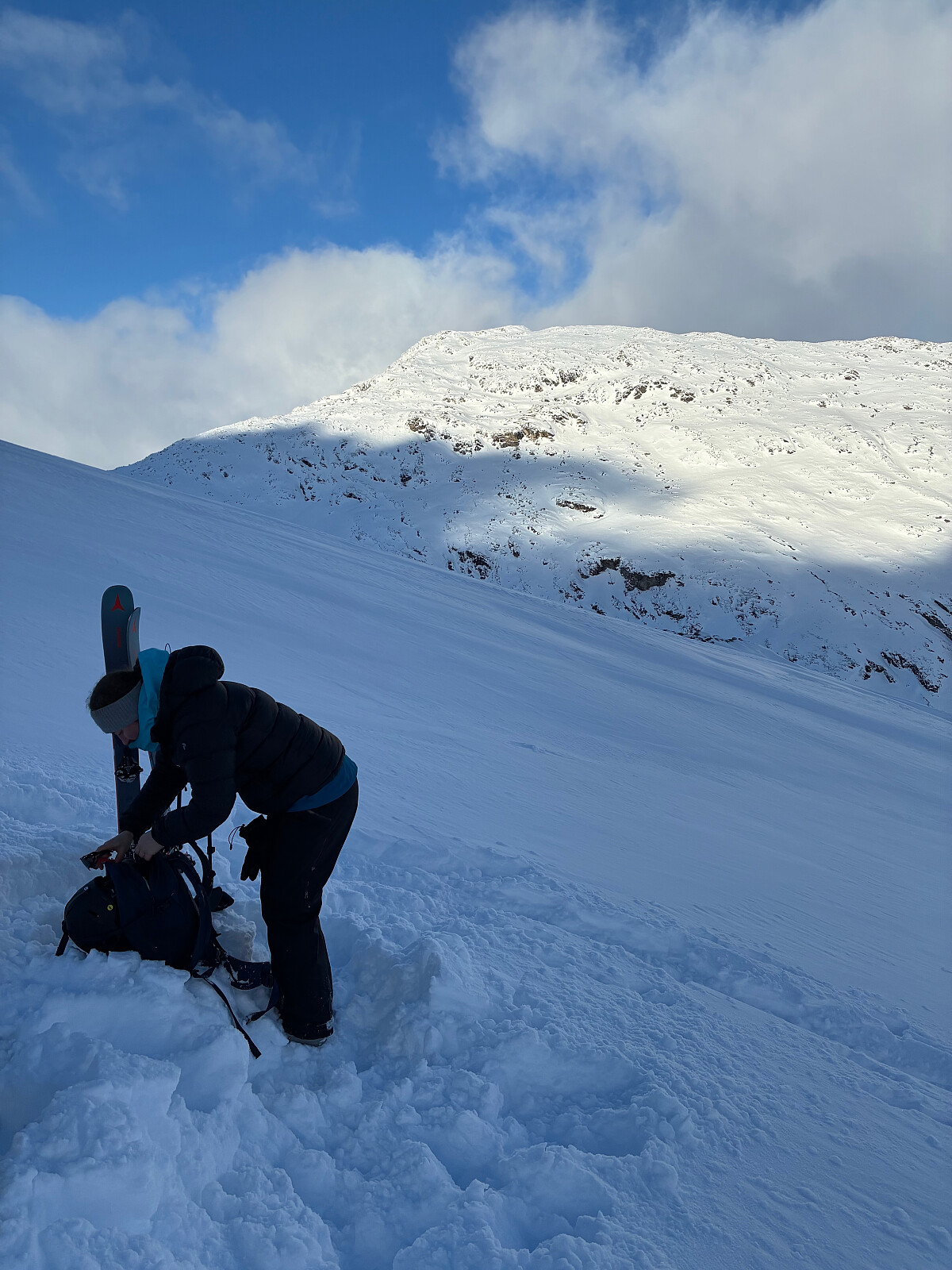 Dag 1 på todagers skredkurs for Statnett. Gikk fra Stuttgongen til Billingen via Veslfjellet med en god runde med kameratredning på starten av turen. Ganske tungt brøyteføre gjennom skogen med et lite skarelag i toppen. Eksplosive forhold over tregrensa med flere drønn. Tung vindpakket myk snø ned til Billingen.