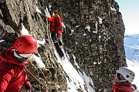 I disse medieoppblåste skredtider var det en positiv overraskelse da Øyvind og Jørn meldte om stabil og god snø i Hurrungane på vei til de Nørdre Midtmaradalstinder via Berges renne forrige helg . Da meteorologen meldte om bombehøytrykk helgen etter fikk jeg det spontant for meg at nå skulle Storen vinterbestiges! Det er enhver alpinklatrers drøm å ha gjennomført denne turen, så nå, med nok av erfaring i sekken burde dette være en realistisk målsetning selv om den fortsatt var en drøm. Det har nok ikke enda gått helt opp for meg at turen er gjennomført, så dere får ha meg unnskyldt om rapporten blir en smule «diffus». Etter helgas mentale hardkjør virker alle detaljer så fjerne, en merkelig følelse. Men jeg går nå i hvertfall rundt og smiler fra øre til øre her hjemme. >>>