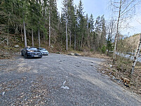 Kom fra Dalsfjell og parkerte ved Melum kirke. Syklet langs RV36 noen meter før jeg krysset veien og tok bomveien oppover. Er mulig å parkere ett par plasser ved bommen men nå holdt bonden på med noe vedgreier og traktorkjøring så det var bedre å stå ved kirka. Etter ett uthus går veien bratt oppover. I første sving er det skiltet blåmerket sti til Kjerkeåsen. Vet ikke hvor den ender men jeg så ikke noe til den ved toppunktet. Fulgte grusveien bratt oppover til en hytte på venstre side. Fortsatte på traktorvei videre oppover. Der traktorveien gjør en sving til høyre mot masta gikk jeg rett fram og fulgte en lite brukt umerket sti opp lia og mot toppen. Lett å finne toppunktet med GPS. Toppen er markert med en bolt . Ingen utsikt. Retur samme vei. Nå gikk det raskt ned bakken >>>