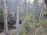 Kjørte Fv416 mot Risør og tok til høyre mot Laget. Til venstre rett etter krysset ligger turparkeringen. Her er det satt opp infoskilt med kart over stier i området. Ved parkeringen er det rester etter en tysk bunkers fra 2.verdenskrig. Parkerte og fulgte skilting mot Gartetjenn. Veien følger Kvernhusbekken oppover til stidele. Tok her til venstre mot Skardalen og Myrtjenna. Etter 300 meter forlot vi stien og gikk i terrenget mot toppen. Selve toppområdet er ganske flatt. Det er foretatt hogst her i vinter så det er litt kronglete å gå fram til der toppunktet skal være. Ingen markert topp og ingen utsikt. Tilbake holdt vi oss utenfor hogstområdet og gikk stort sett i lyng ned til vi møtte stien igjen. Fortsatte mot Gartetjenndammen. Dammen er har ikke vært i bruk siden 1980 tallet >>>