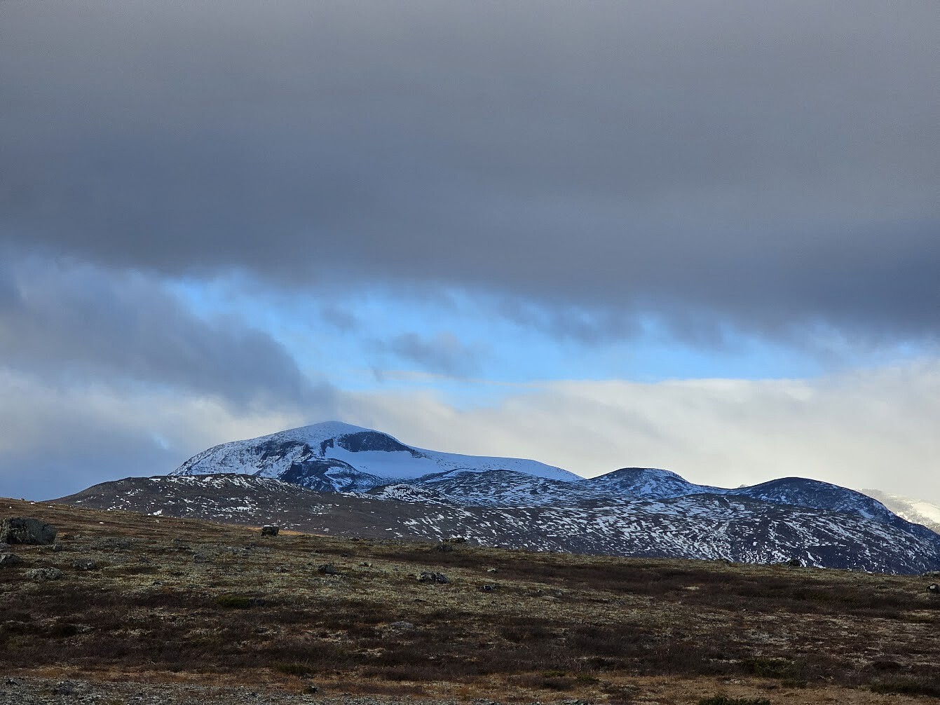 Gårsdagen blåste helt bort. Makan til vind på Øvre Sjodalsvatnet har jeg aldri opplevd. YR spådde 30 sekundmeter i kastene og jeg tror det var det. Vinden pisket vann fra Sjodalsvatnet og opp på vinduene i hytta jeg bodde i. Egentlig var planen å gå til Besstrondtjønnin og prøve fiskelykken. Men jeg så at siste dag for stangfiske her oppe var fredag 10. oktober. Men jeg var likevel nysgjerring på dette tjernet som jeg tidligere har passert to ganger, begge gangene har det vært dekket av is og snø. Så i dag ble det en tur fra hytta og opp til tjernet. Gikk opp gjennom husene på Besstrond og stien som ligger lengst bort i veien. Oppover ganske lettgått og etterhvert et stikryss til venstre (vestover). Oppe på åsen forlot jeg stien og gikk i luftlinje mot tjernet. Det blåste >>>