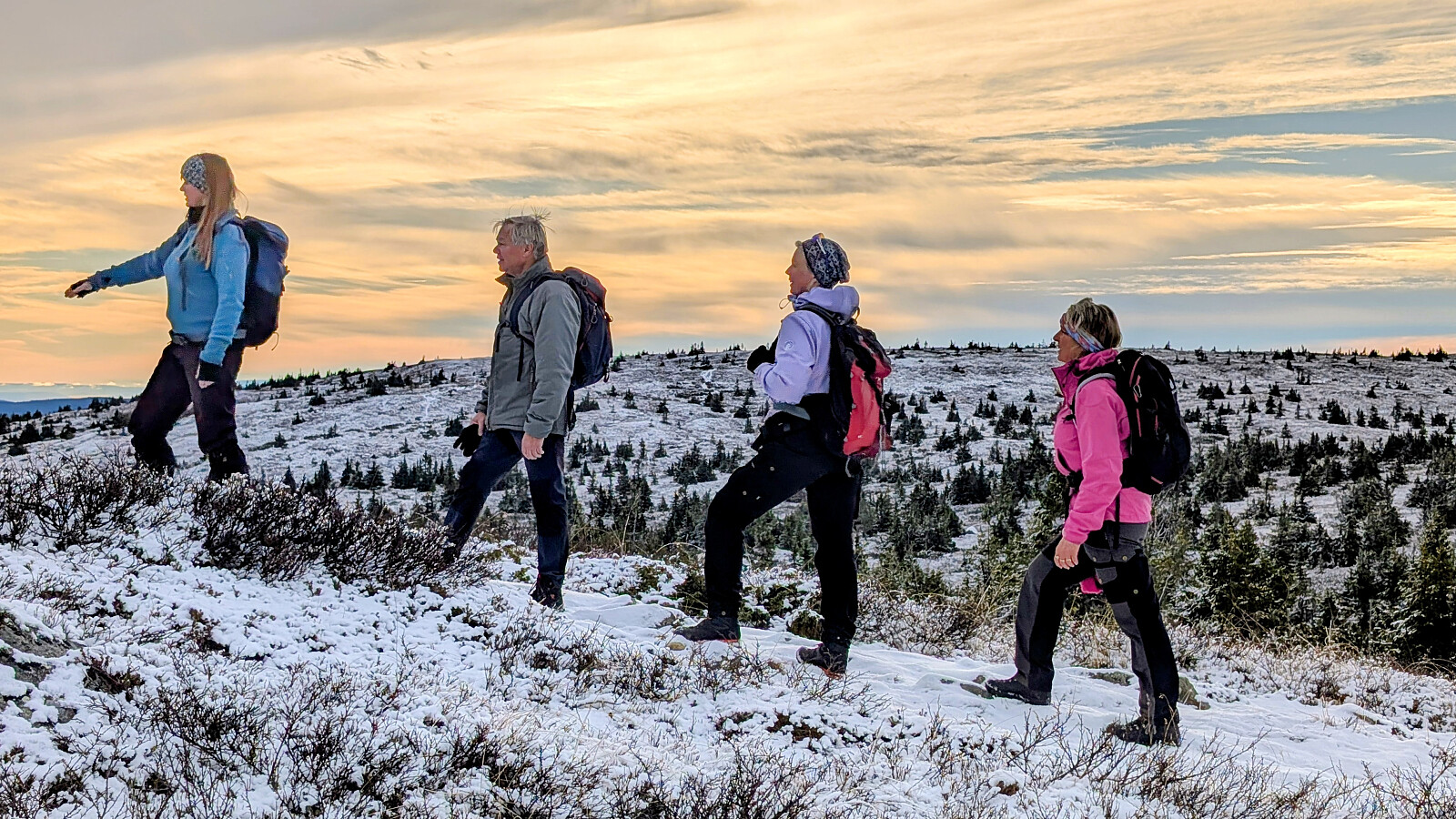 Fikk tilbud om å bli med på tur til Fåberg-Vestfjell og det er jo et fint turalternativ før morgendagens tøffere tur. Det ble en trivelig tur med tre damer fra Facebookgruppa "Fjellfolk" Ikke topp vær, men trolsk med tåke som kom og gikk. Tok de med opp dette lille "cruxet" opp mot Prestkjerringa. Ikke mange slike bratte plasser her oppe i dette fjellområdet. Krydrer en enkel tur litt iallefall. Matpause ved Gammelhans i le for en litt sur vind fra nord.
