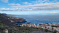 Startet fra Santiago del Teide. Derfra bar det nedover til sjøen. Fin gangvei med oppmurte kanter. Utsikt nedover mot los Gigantes. Gikk mellom mange store bananplantasjer. Fin tur.