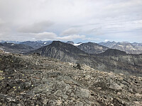 Stor fin varde på toppen. Bak sees bla Besshøe, Surtningsue og Nautgardstind.