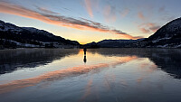 Fint etter jobb for begge å komme seg på Jølstravatnet og nyte ein speilblank is igjen! Om vi ikkje rakk å kjenne litt på solvarmen, så rakk vi ein nydelig solnedgang.