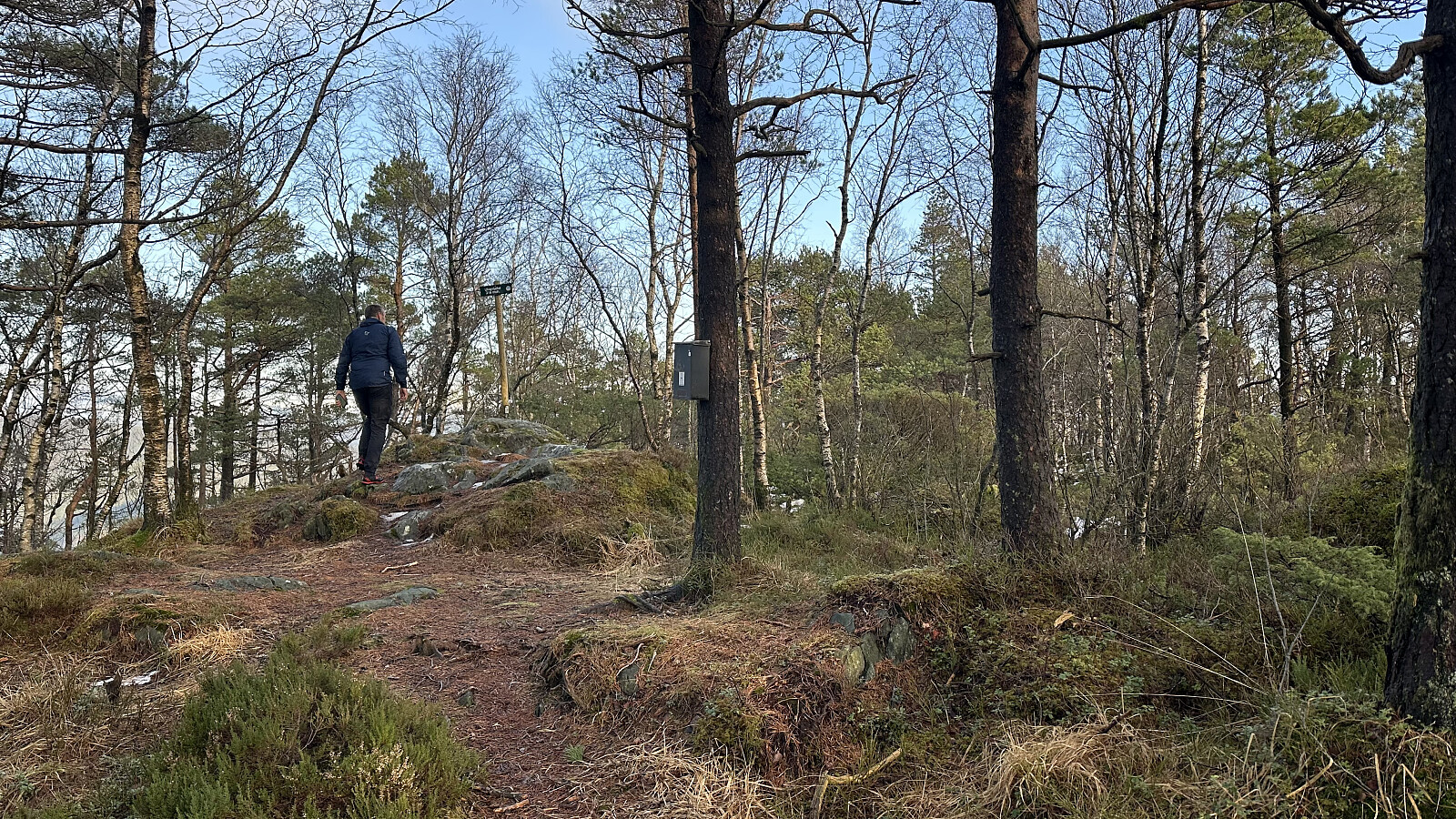 På heimtur vart det ein tur oppom Furefjellet som pr i dag har ein pf på 99 meter. I dette området hadde siste stormen virkelig herja i granfeltet! Tur ilag med Inge