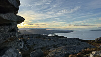 Det var våt sti til toppen denne gang også og det går å knote litt med stien i eit par vende! :) Ellers fint å ha tida til å studere landskapet og kjente landområder ifrå toppen!