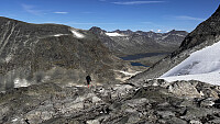 Roleg morgon inne ved Olavsbu og fint med frukost kaffien i stilla. Returen tilbake til Leirvassbu vart med ein forandring utifrå første plan. Som var tenkt over Austre Rauddalstinen og vidare via Store & Vestre Rauddalstindane.