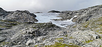 Dette er ein tur som eg kan like som aller best! Naturen er rå og mektig! Middagsnibba 1443 ligg lite inne med info om rute opp! Sett vekk ifrå at ein kan nå den fint på ski via Hanekammen 1651 moh. Ekstra kjekt då å finure terrenget som tilsynelatande ser knotete ut til fots ifrå nye kanter. Skodda låg trolsk idag med yr på toppane! Det la likevel ingen hindring på utforskningstrangen og ein eventuell retur. Nydelige haustfargar og fantastisk å studere breane & brefalla som Melkevollbreen & Briksdalsbreen/Jostedalsbreen. Ingen ting anna å seie enn stor fascinasjon for naturen i dette riket!